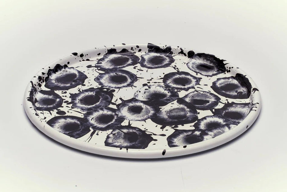 Floral Madness Round Tray II - Enamel Vintage Look Washable Serving Tray / Kapka