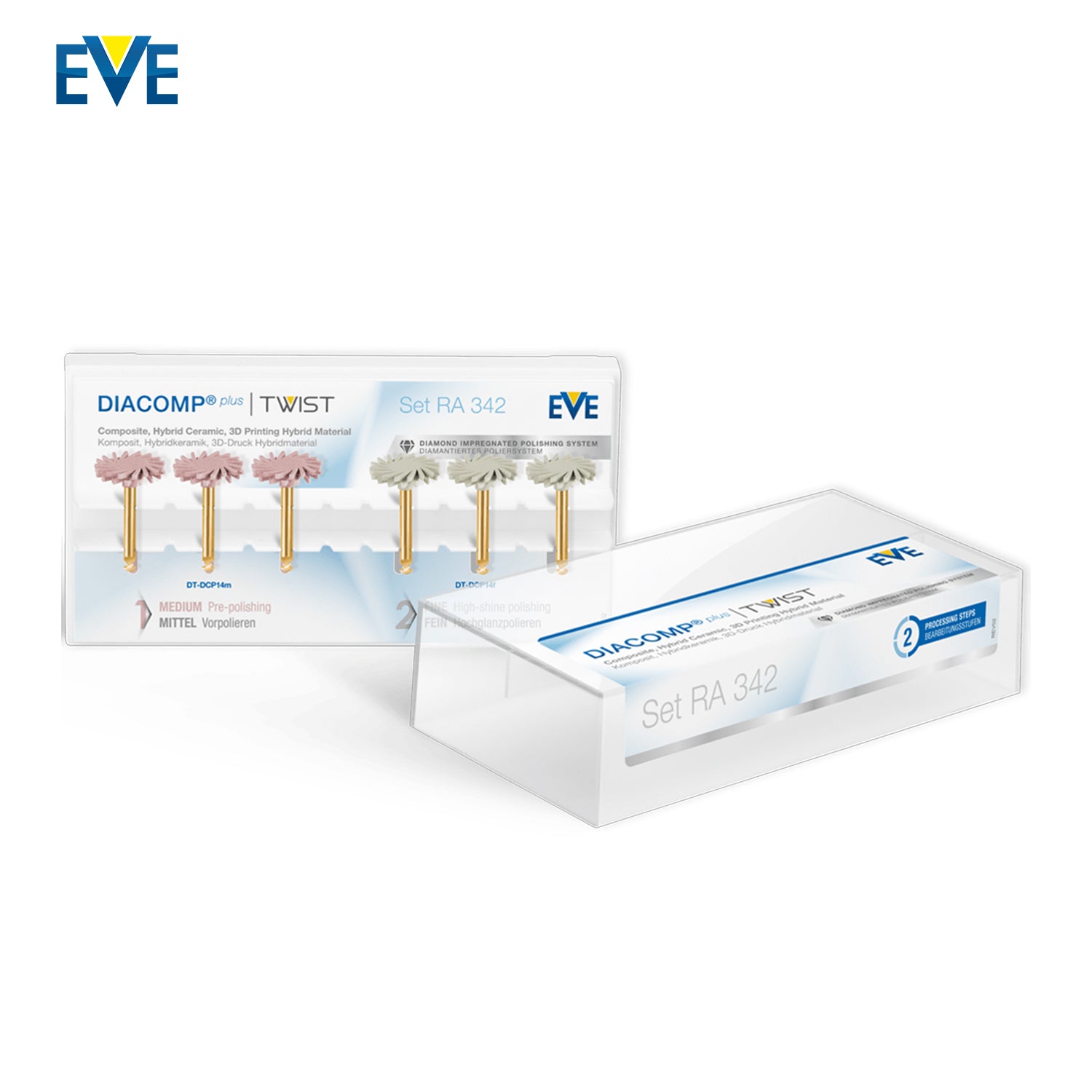 La spirale de finition fine (beige) élimine les rayures sur la surface de la restauration lors du contourage et prépare la surface au polissage.