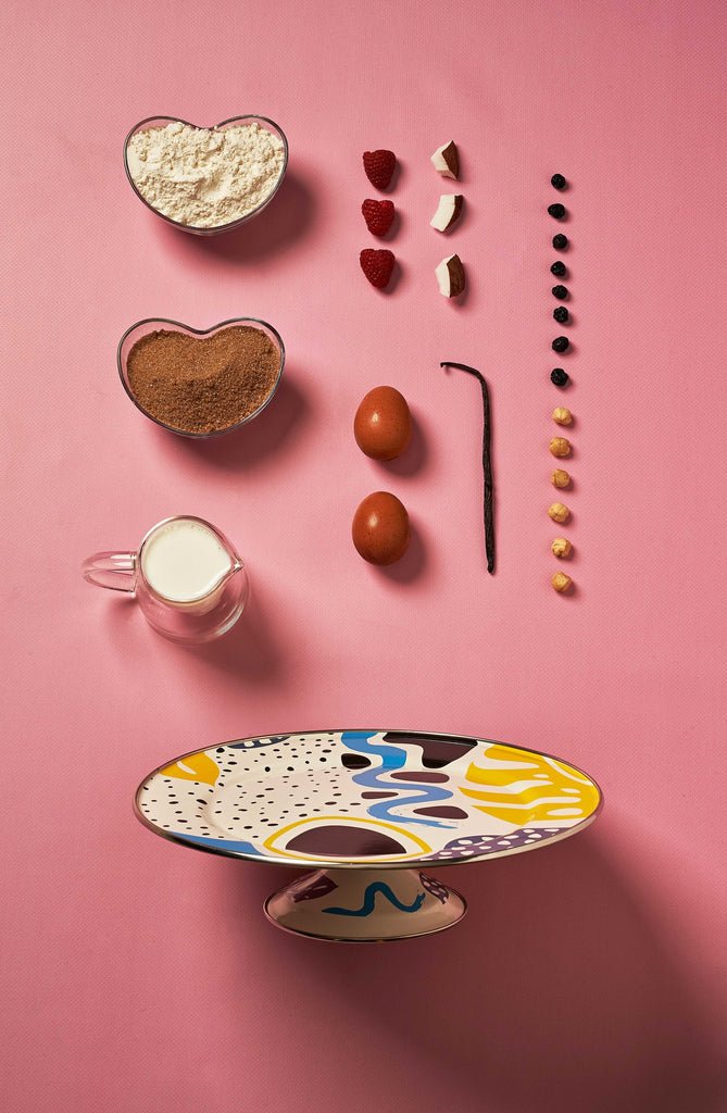 Le présentoir à gâteaux Flashback est une version funky des assiettes classiques avec son design coloré inspiré des tendances memphis et disco. Il est aussi délicieux que le gâteau qui le recouvre.