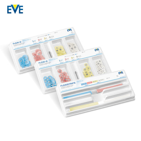 Il y a 4 mandrins métalliques dans l'ensemble au cas où vous le perdriez. Certains disques du set sont double face, ce qui vous permettra d'accéder facilement à toutes les surfaces des dents. Les ponceuses d'interface incluses dans le set vous permettront de goûter à la qualité Shofu à chaque étape du processus de polissage et de finition.
