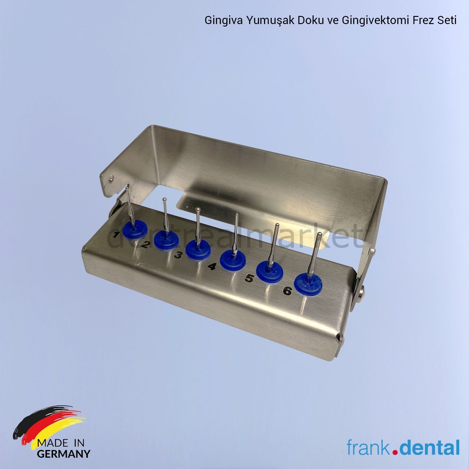 The GingiBur Set is a professional kit designed for gingivectomy, consisting of six high-quality stainless steel burs. It is ideal for a wide range of procedures, from minor soft tissue adjustments in interdental spaces and subgingival caries preparations to more extensive treatments.