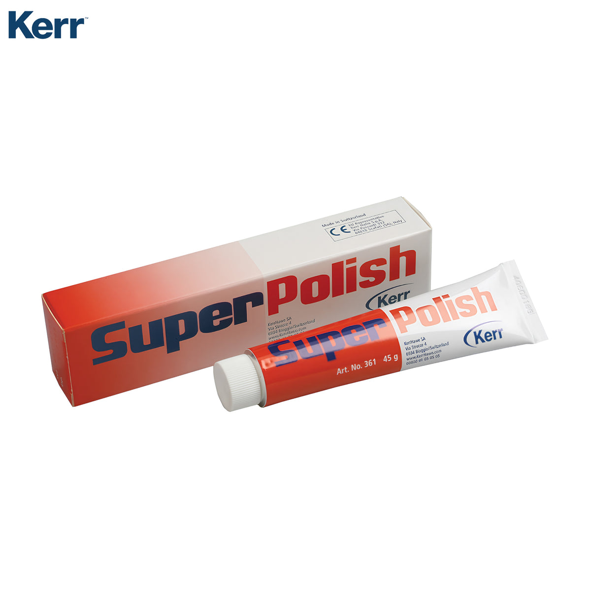Super Polish is a fine-grain paste used for the final polishing of natural teeth, as well as for polishing amalgam, gold, and composite restorations.
