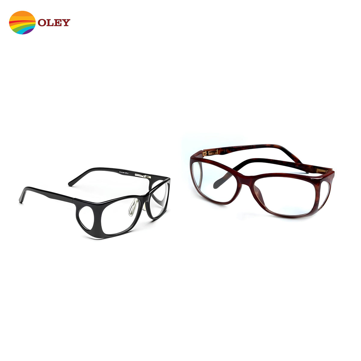 Oley brand radiation protective lead glasses are designed to protect the eyes from radiation. These glasses provide front protection of 0.75mmpb and side protection of 0.50mmpb. This feature ensures protection from X-ray beams coming from both the front and sides.